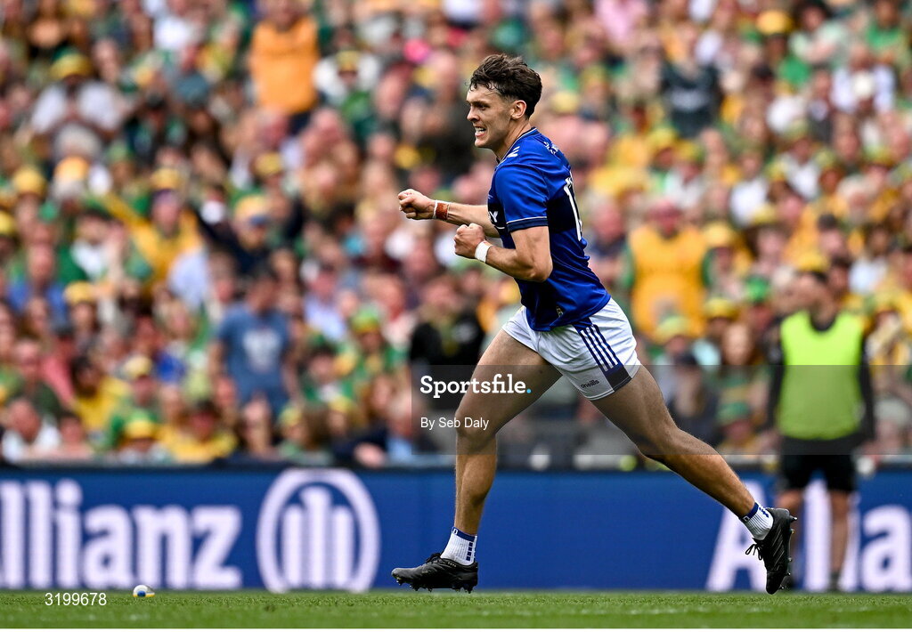 27 July 2025; David Clifford of Kerry celebrates kicking a point during the GAA Football All-Ireland Senior Championship final match between Kerry and Donegal at Croke Park in Dublin. Photo by Seb Daly/Sportsfile