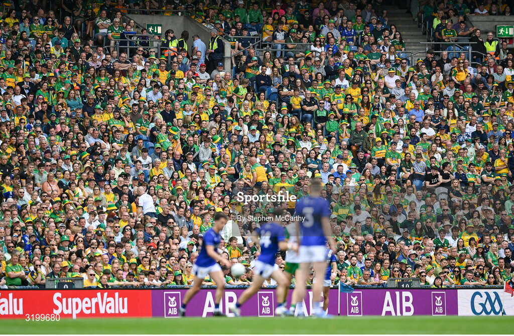 27 July 2025; Supporters leave their seats during the final moments of the first half during the GAA Football All-Ireland Senior Championship final match between Kerry and Donegal at Croke Park in Dublin. Photo by Stephen McCarthy/Sportsfile