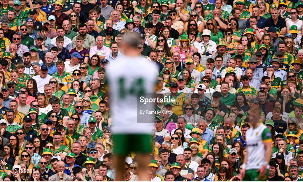 27 July 2025; Supporters watch on as Michael Murphy of Donegal takes a free during the GAA Football All-Ireland Senior Championship final match between Kerry and Donegal at Croke Park in Dublin. Photo by Ramsey Cardy/Sportsfile