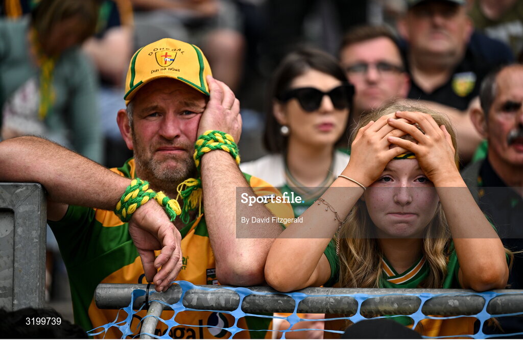 27 July 2025; Donegal supporters during the GAA Football All-Ireland Senior Championship final match between Kerry and Donegal at Croke Park in Dublin. Photo by David Fitzgerald/Sportsfile