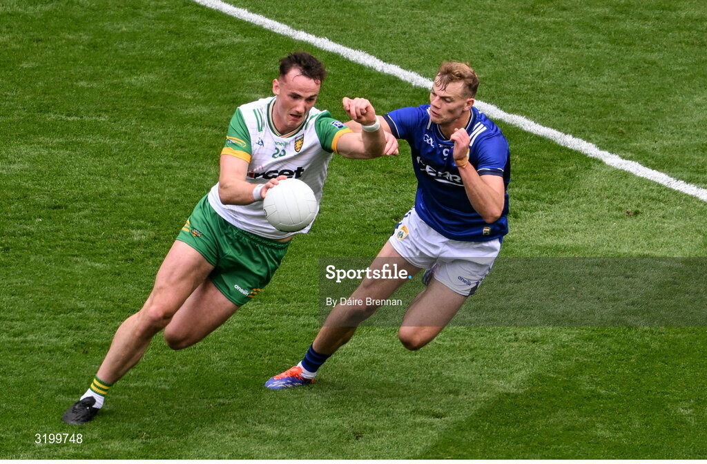 27 July 2025; Jason McGee of Donegal in action against Mark O'Shea of Kerry during the GAA Football All-Ireland Senior Championship final match between Kerry and Donegal at Croke Park in Dublin. Photo by Stephen McCarthy/Sportsfile Photo by Daire Brennan/Sportsfile