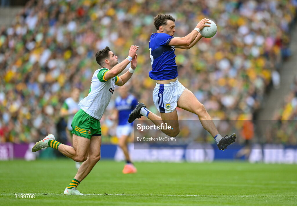 27 July 2025; David Clifford of Kerry in action against Brendan McCole of Donegal during the GAA Football All-Ireland Senior Championship final match between Kerry and Donegal at Croke Park in Dublin. Photo by Stephen McCarthy/Sportsfile