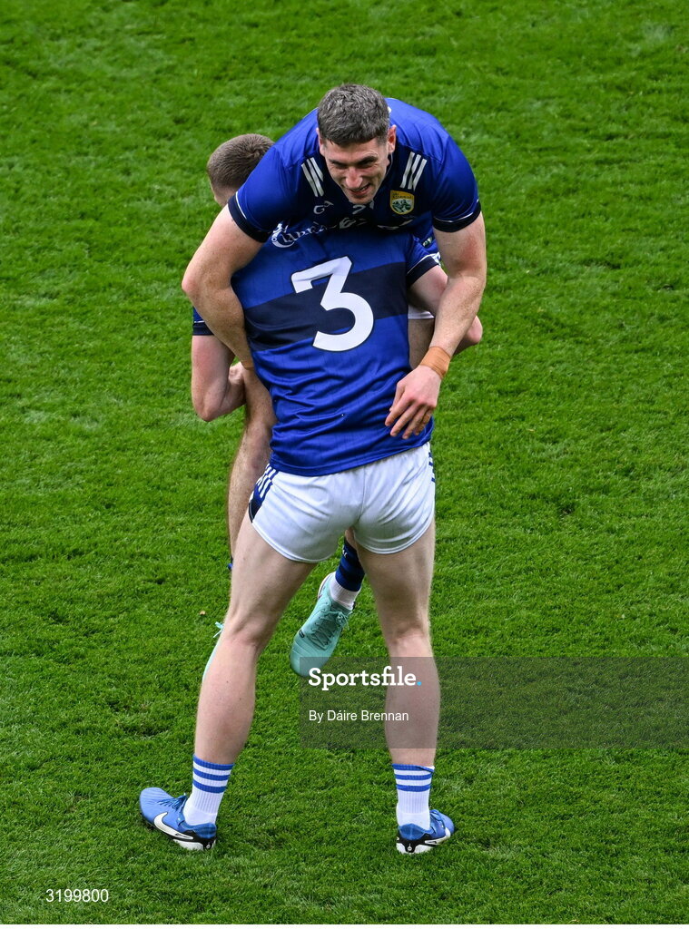 27 July 2025; Jason Foley, 3, and Paul Geaney of Kerry celebrates after the GAA Football All-Ireland Senior Championship final match between Kerry and Donegal at Croke Park in Dublin. Photo by Daire Brennan/Sportsfile