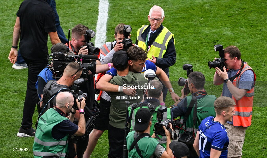 27 July 2025; David Clifford, right, and Kerry manager Jack O'Connor celebrate after the GAA Football All-Ireland Senior Championship final match between Kerry and Donegal at Croke Park in Dublin. Photo by Daire Brennan/Sportsfile