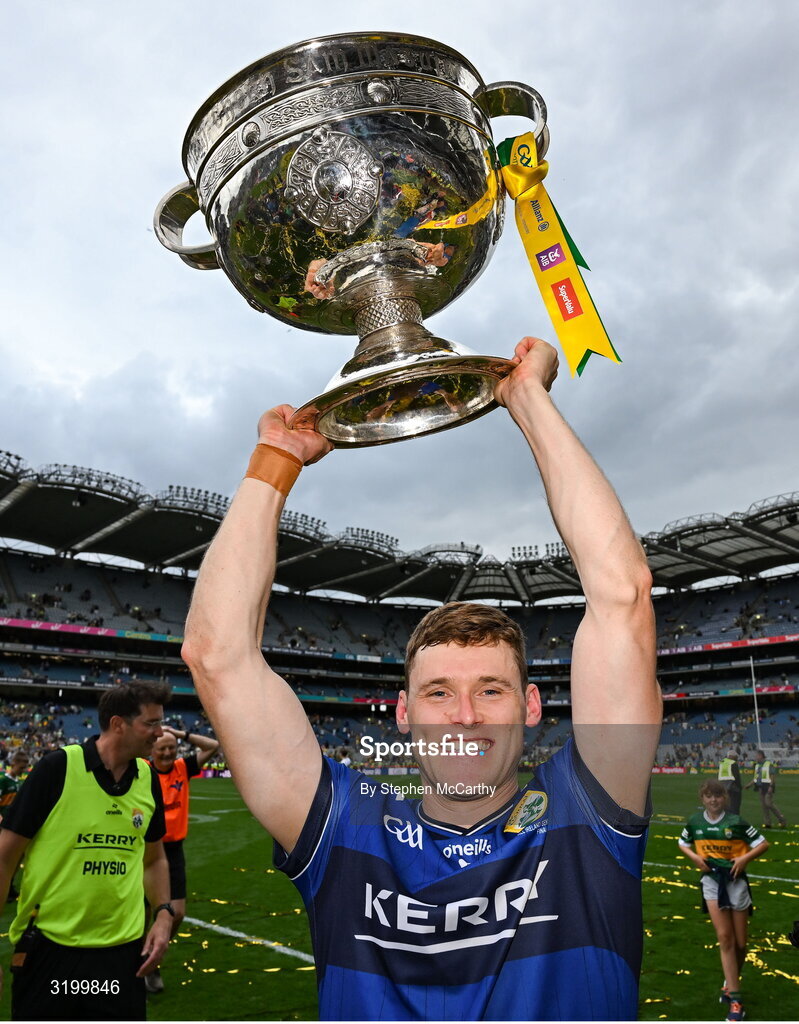27 July 2025; Kerry captain Gavin White lifts the Sam Maguire cup after the GAA Football All-Ireland Senior Championship final match between Kerry and Donegal at Croke Park in Dublin. Photo by Stephen McCarthy/Sportsfile