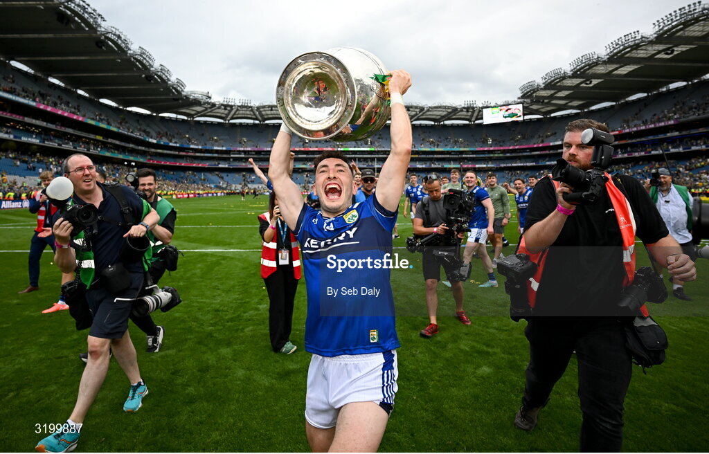 27 July 2025; Paudie Clifford of Kerry celebrates with the Sam Maguire cup after the GAA Football All-Ireland Senior Championship final match between Kerry and Donegal at Croke Park in Dublin. Photo by Seb Daly/Sportsfile