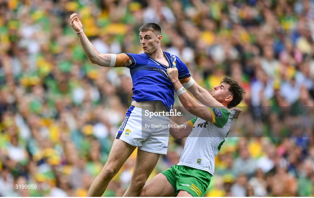 27 July 2025; Diarmuid O'Connor of Kerry and Dáire Ó Baoill of Donegal tussle during the GAA Football All-Ireland Senior Championship final match between Kerry and Donegal at Croke Park in Dublin. Photo by Stephen McCarthy/Sportsfile