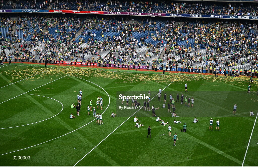 27 July 2025; Dejected Donegal players after the GAA Football All-Ireland Senior Championship final match between Kerry and Donegal at Croke Park in Dublin. Photo by Piaras Ó Mídheach/Sportsfile