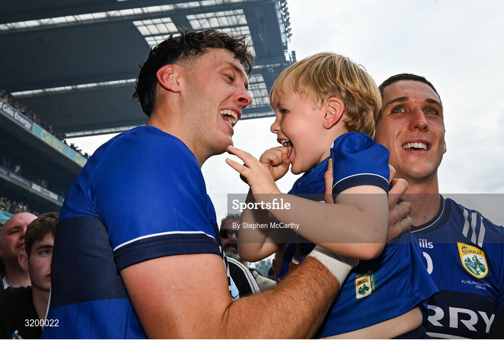 27 July 2025; David Clifford of Kerry celebrates with his son Ogie after the GAA Football All-Ireland Senior Championship final match between Kerry and Donegal at Croke Park in Dublin. Photo by Stephen McCarthy/Sportsfile