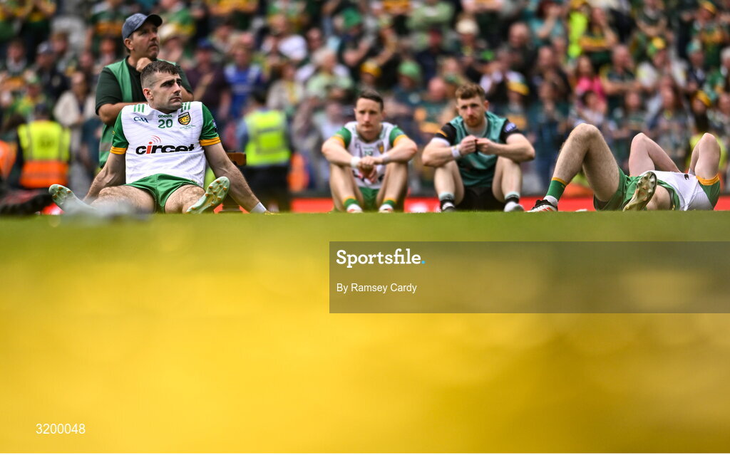 27 July 2025; Caolan McGonagle of Donegal and his teammates dejected after the GAA Football All-Ireland Senior Championship final match between Kerry and Donegal at Croke Park in Dublin. Photo by Ramsey Cardy/Sportsfile