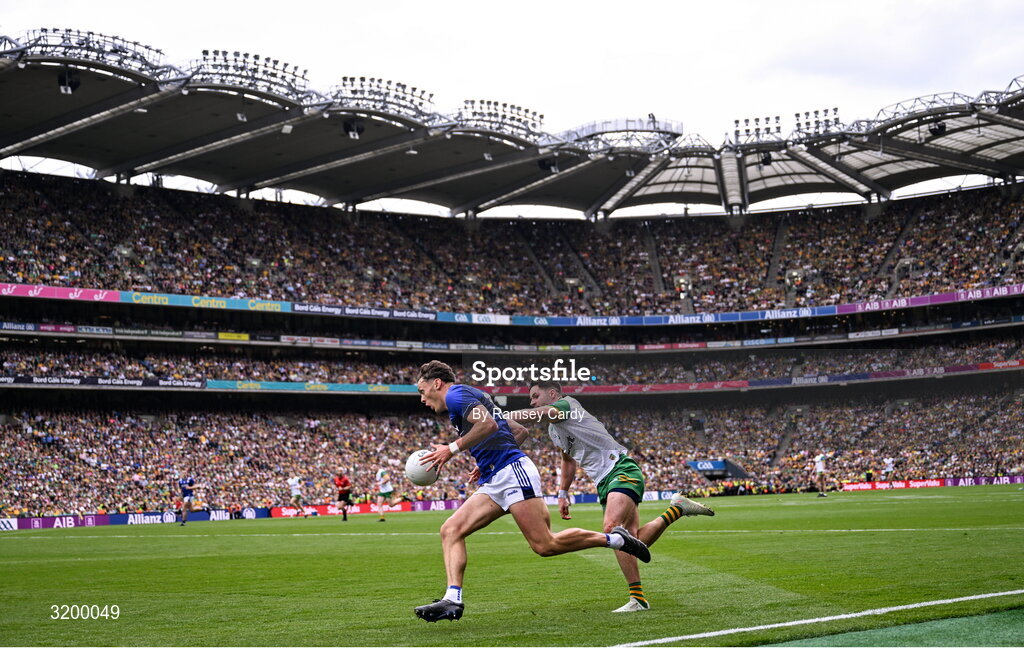 27 July 2025; David Clifford of Kerry in action against Brendan McCole of Donegal during the GAA Football All-Ireland Senior Championship final match between Kerry and Donegal at Croke Park in Dublin. Photo by Ramsey Cardy/Sportsfile