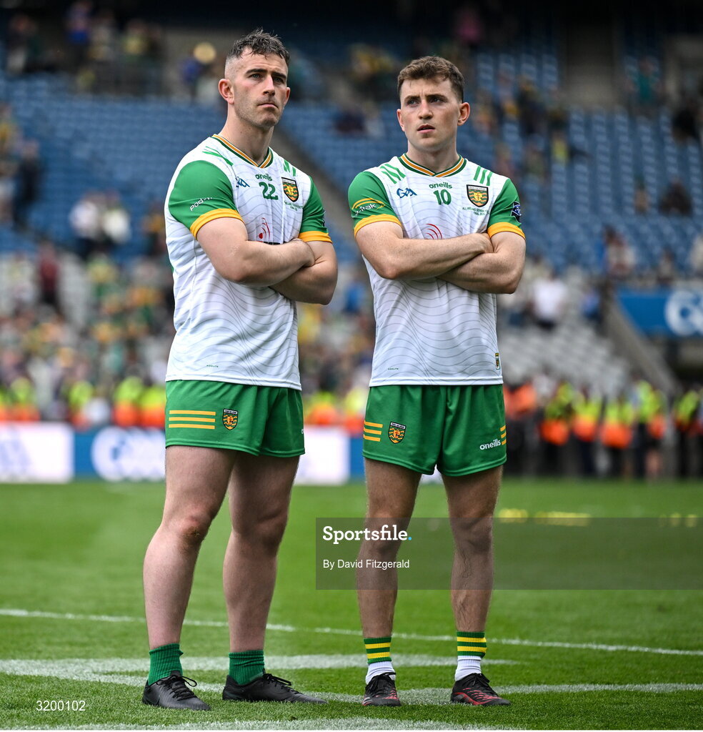 27 July 2025; Patrick McBrearty, left, and Shane O'Donnell of Donegal dejected after the GAA Football All-Ireland Senior Championship final match between Kerry and Donegal at Croke Park in Dublin. Photo by David Fitzgerald/Sportsfile