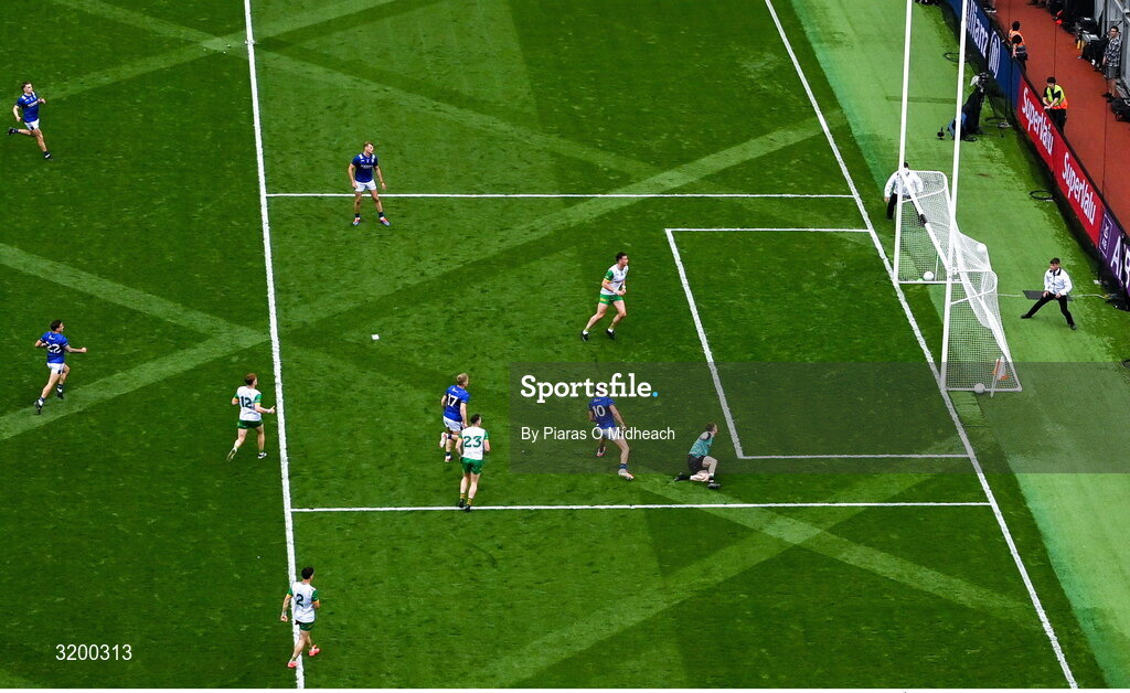 27 July 2025; Joe O'Connor of Kerry scores his side's goal during the GAA Football All-Ireland Senior Championship final match between Kerry and Donegal at Croke Park in Dublin. Photo by Piaras Ó Mídheach/Sportsfile