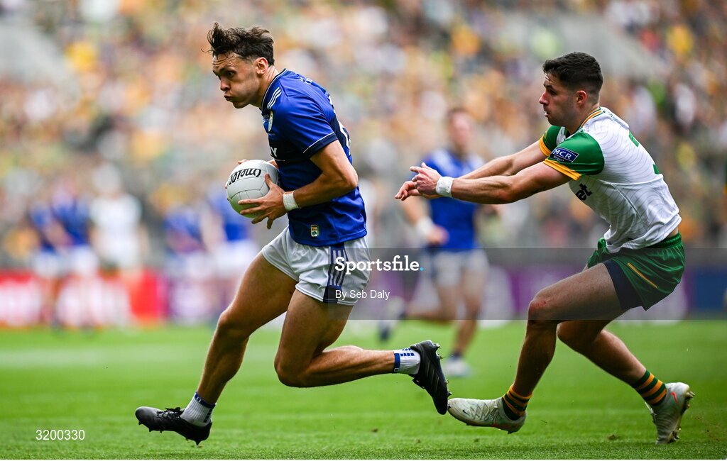 27 July 2025; David Clifford of Kerry in action against Brendan McCole of Donegal during the GAA Football All-Ireland Senior Championship final match between Kerry and Donegal at Croke Park in Dublin. Photo by Seb Daly/Sportsfile