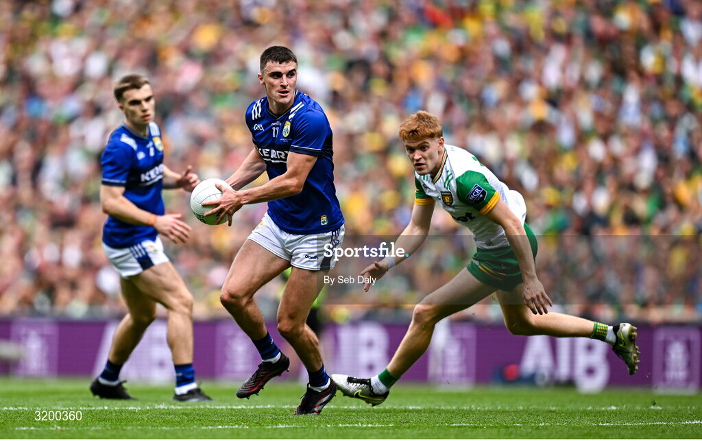 27 July 2025; Seán O'Shea of Kerry in action against Ciaran Moore of Donegal during the GAA Football All-Ireland Senior Championship final match between Kerry and Donegal at Croke Park in Dublin. Photo by Seb Daly/Sportsfile