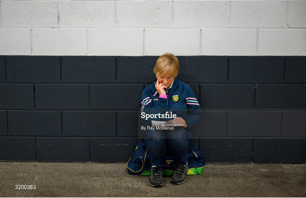 27 July 2025; Donegal GAA Secretary Mary Kelly checks the team list, outside the dressingroom, before the GAA Football All-Ireland Senior Championship final match between Kerry and Donegal at Croke Park in Dublin. Photo by Ray McManus/Sportsfile