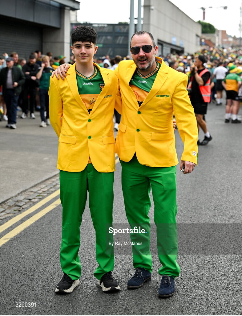 27 July 2025; Donegal supporters Cian and Gavin Doherty, from Killybegs, before the GAA Football All-Ireland Senior Championship final match between Kerry and Donegal at Croke Park in Dublin. Photo by Ray McManus/Sportsfile
