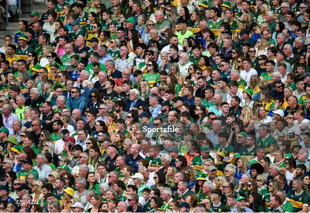 27 July 2025; Spectators in the Hogan Stand during the GAA Football All-Ireland Senior Championship final match between Kerry and Donegal at Croke Park in Dublin. Photo by Ray McManus/Sportsfile