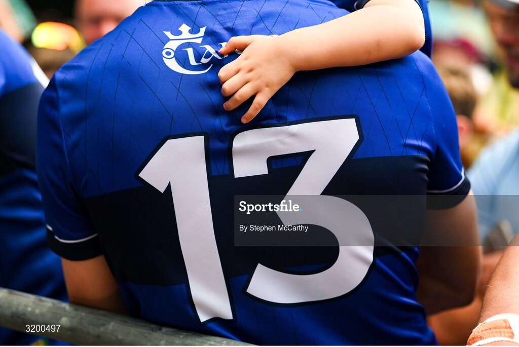 27 July 2025; The hand Ogie Clifford is placed on his father's back, David Clifford, after the GAA Football All-Ireland Senior Championship final match between Kerry and Donegal at Croke Park in Dublin. Photo by Stephen McCarthy/Sportsfile