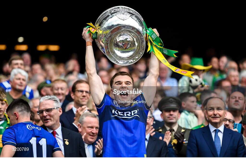27 July 2025; Dylan Casey of Kerry lifts the Sam Maguire cup in celebration following their side's victory in the GAA Football All-Ireland Senior Championship final match between Kerry and Donegal at Croke Park in Dublin. Photo by Stephen McCarthy/Sportsfile