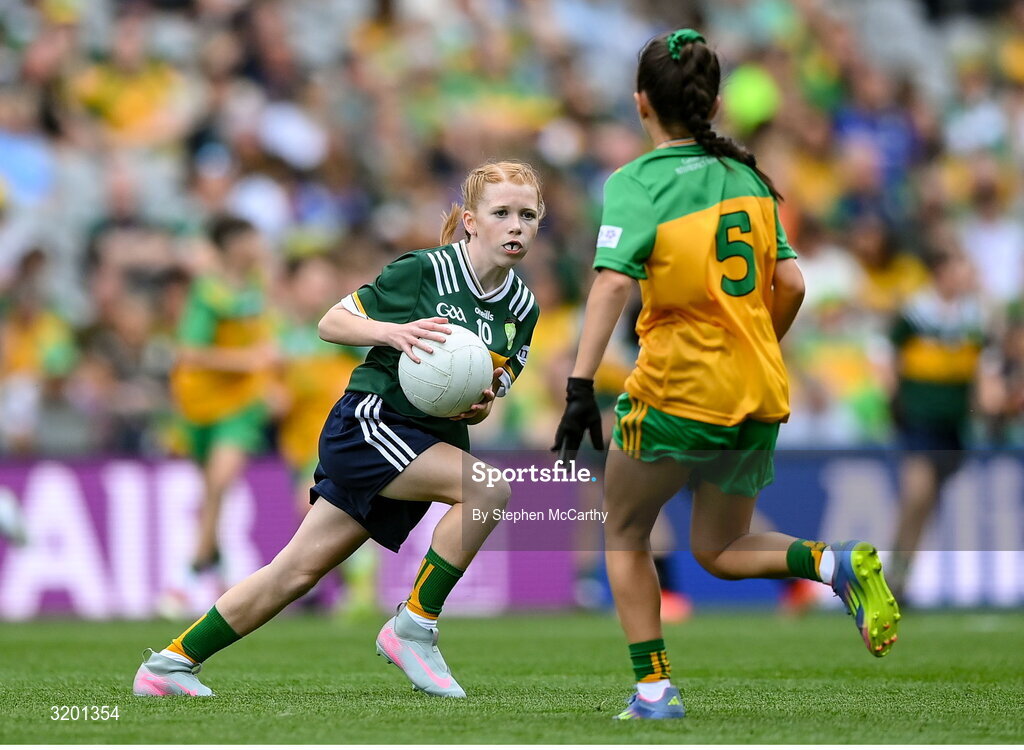 27 July 2025; Bailee Bolton, St Fiacc's NS, Graiguecullen, Laois, representing Kerry, during the GAA INTO Cumann na mBunscol Respect Exhibition Go Games at the GAA Football All-Ireland Senior Championship final match between Kerry and Donegal at Croke Park in Dublin. Photo by Stephen McCarthy/Sportsfile