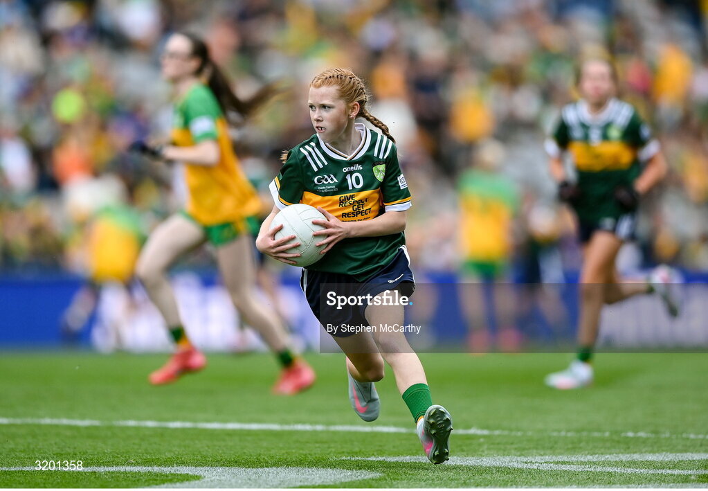 27 July 2025; Bailee Bolton, St Fiacc's NS, Graiguecullen, Laois, representing Kerry, during the GAA INTO Cumann na mBunscol Respect Exhibition Go Games at the GAA Football All-Ireland Senior Championship final match between Kerry and Donegal at Croke Park in Dublin. Photo by Stephen McCarthy/Sportsfile