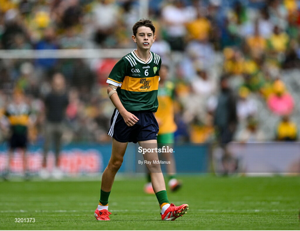 27 July 2025; Oisín Lynch, St Mary's NS, Virginia, Cavan, representing Kerry, during the GAA INTO Cumann na mBunscol Respect Exhibition Go Games at the GAA Football All-Ireland Senior Championship final match between Kerry and Donegal at Croke Park in Dublin. Photo by Ray McManus/Sportsfile