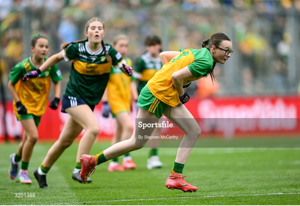 27 July 2025; Teegan Fahy, Clonberne NS, Clonberne, Galway, representing Donegal, during the GAA INTO Cumann na mBunscol Respect Exhibition Go Games at the GAA Football All-Ireland Senior Championship final match between Kerry and Donegal at Croke Park in Dublin. Photo by Stephen McCarthy/Sportsfile