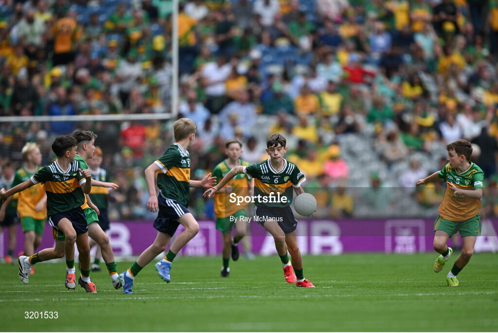 27 July 2025; Oisín Lynch, St Mary's NS, Virginia, Cavan, representing Kerry, during the GAA INTO Cumann na mBunscol Respect Exhibition Go Games at the GAA Football All-Ireland Senior Championship final match between Kerry and Donegal at Croke Park in Dublin. Photo by Ray McManus/Sportsfile