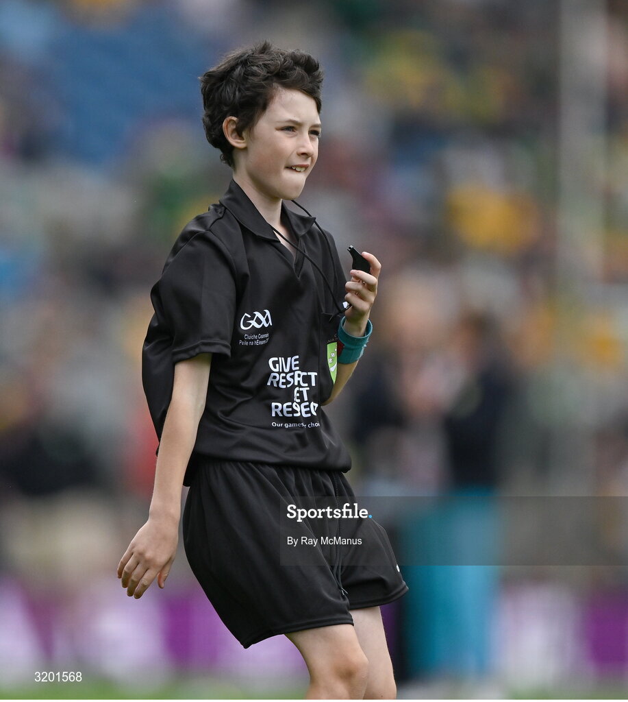 27 July 2025; Referee Daire Horgan, Holy Child Boys NS, Larkhill Road, Dublin, during the GAA INTO Cumann na mBunscol Respect Exhibition Go Games at the GAA Football All-Ireland Senior Championship final match between Kerry and Donegal at Croke Park in Dublin. Photo by Ray McManus/Sportsfile