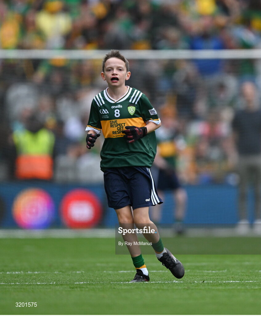 27 July 2025; Michael Harte, St Malachy's PS, Ballygawley, Tyrone, representing Kerry, during the GAA INTO Cumann na mBunscol Respect Exhibition Go Games at the GAA Football All-Ireland Senior Championship final match between Kerry and Donegal at Croke Park in Dublin. Photo by Ray McManus/Sportsfile