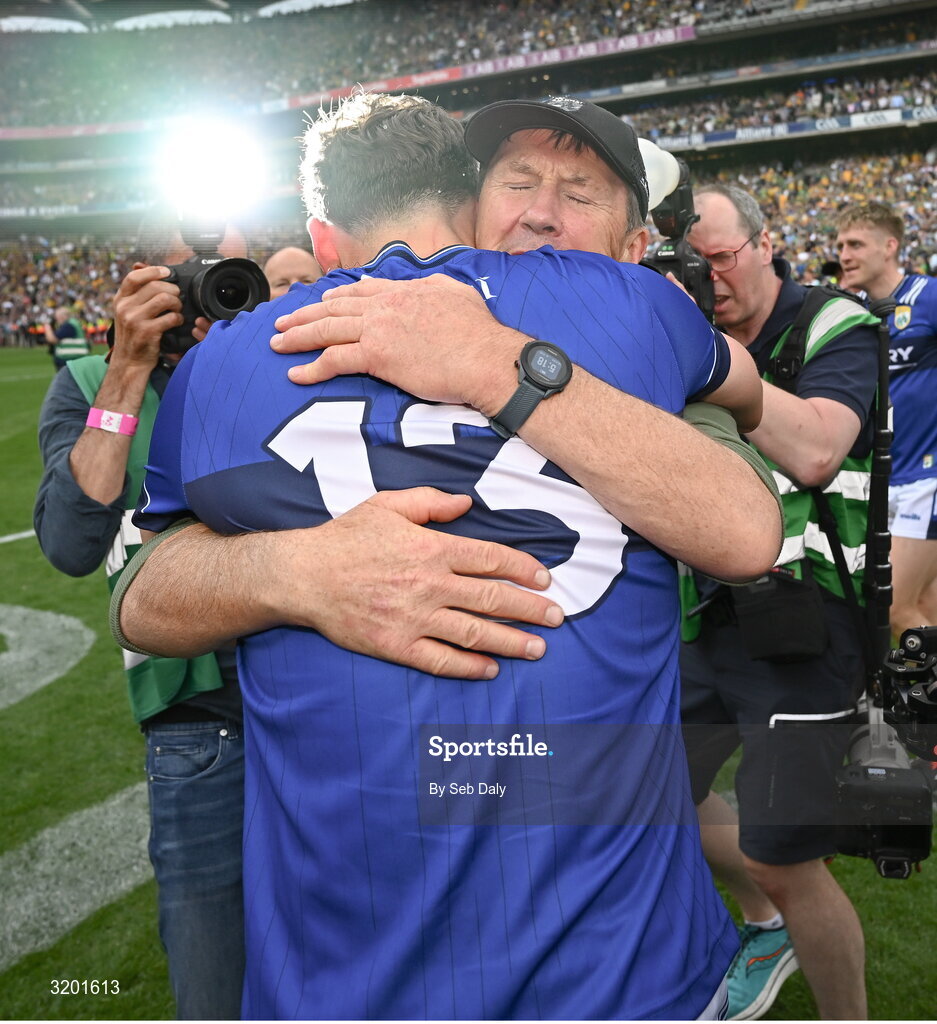 27 July 2025; Kerry manager Jack O'Connor and David Clifford celebrate after their side's victory in the GAA Football All-Ireland Senior Championship final match between Kerry and Donegal at Croke Park in Dublin. Photo by Seb Daly/Sportsfile