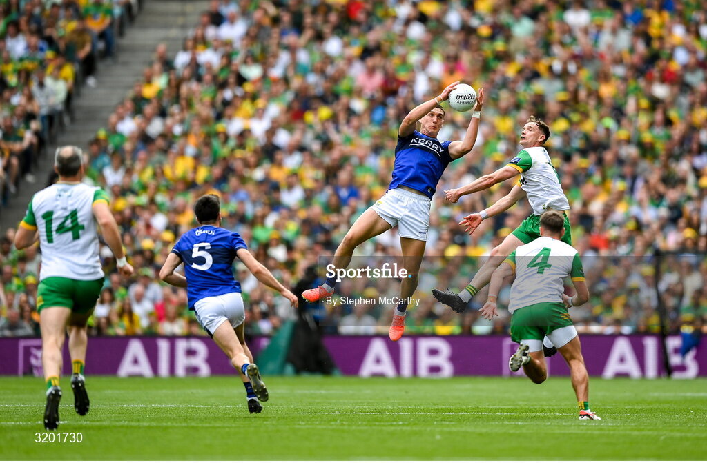 27 July 2025; Joe O'Connor of Kerry in action against Ciaran Thompson of Donegal during the GAA Football All-Ireland Senior Championship final match between Kerry and Donegal at Croke Park in Dublin. Photo by Stephen McCarthy/Sportsfile