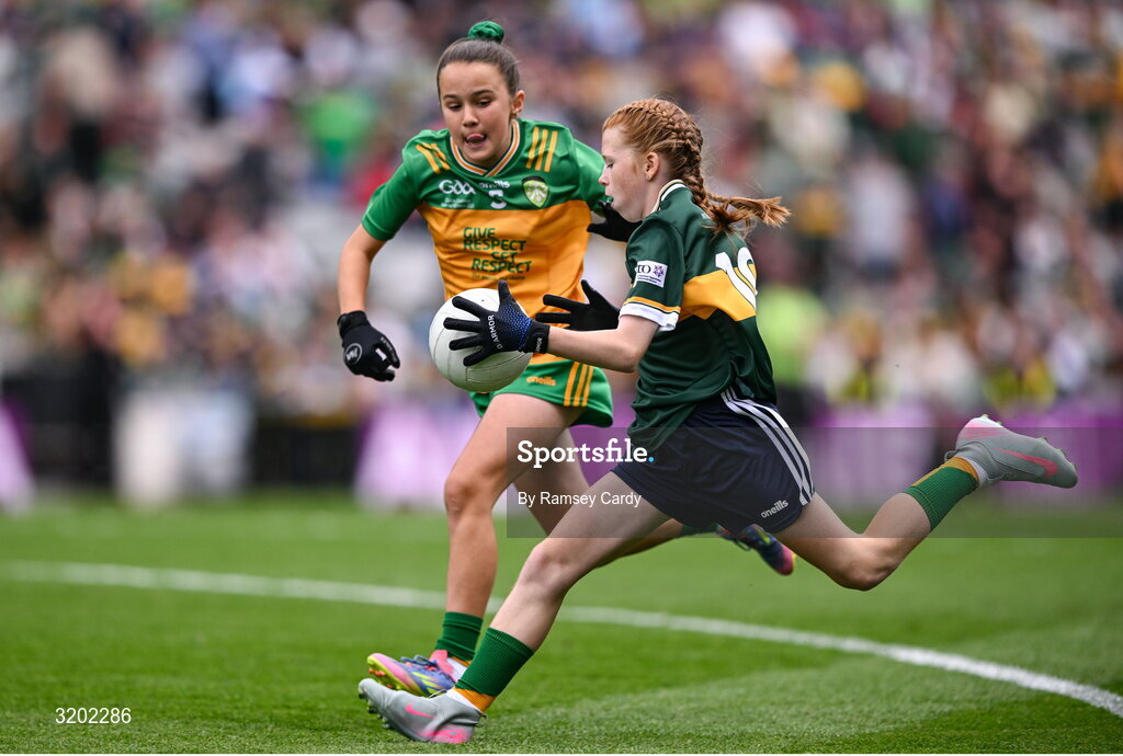 27 July 2025; Bailee Bolton, St Fiacc's NS, Graiguecullen, Laois, representing Kerry, during the GAA INTO Cumann na mBunscol Respect Exhibition Go Games at the GAA Football All-Ireland Senior Championship final match between Kerry and Donegal at Croke Park in Dublin. Photo by Ramsey Cardy/Sportsfile