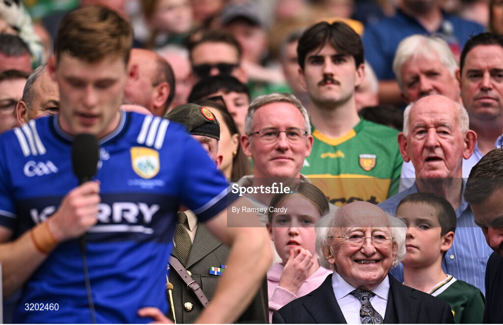 27 July 2025; President of Ireland Michael D Higgins after the GAA Football All-Ireland Senior Championship final match between Kerry and Donegal at Croke Park in Dublin. Photo by Ramsey Cardy/Sportsfile