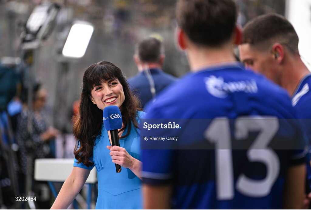 27 July 2025; RTE presenter Joanne Cantwell interviews David Clifford of Kerry after the GAA Football All-Ireland Senior Championship final match between Kerry and Donegal at Croke Park in Dublin. Photo by Ramsey Cardy/Sportsfile