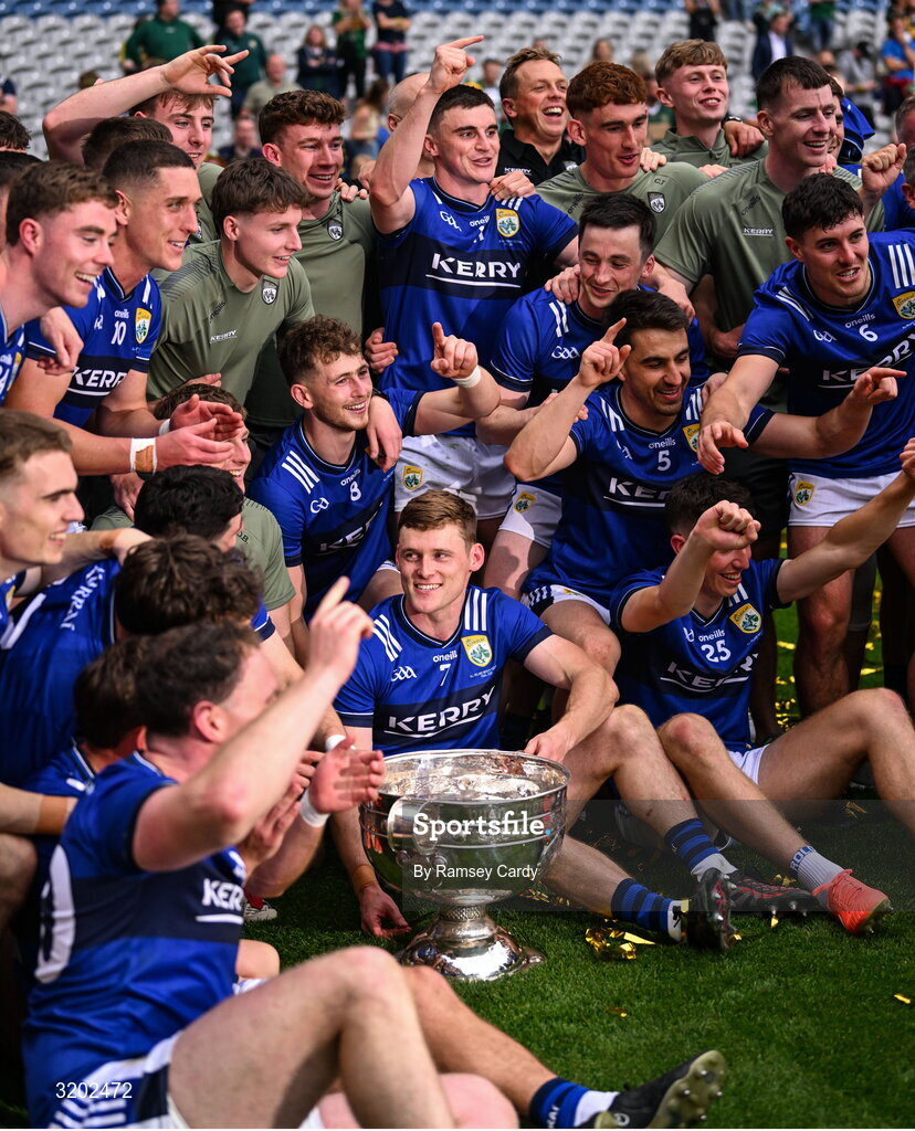 27 July 2025; Kerry players celebrate after the GAA Football All-Ireland Senior Championship final match between Kerry and Donegal at Croke Park in Dublin. Photo by Ramsey Cardy/Sportsfile