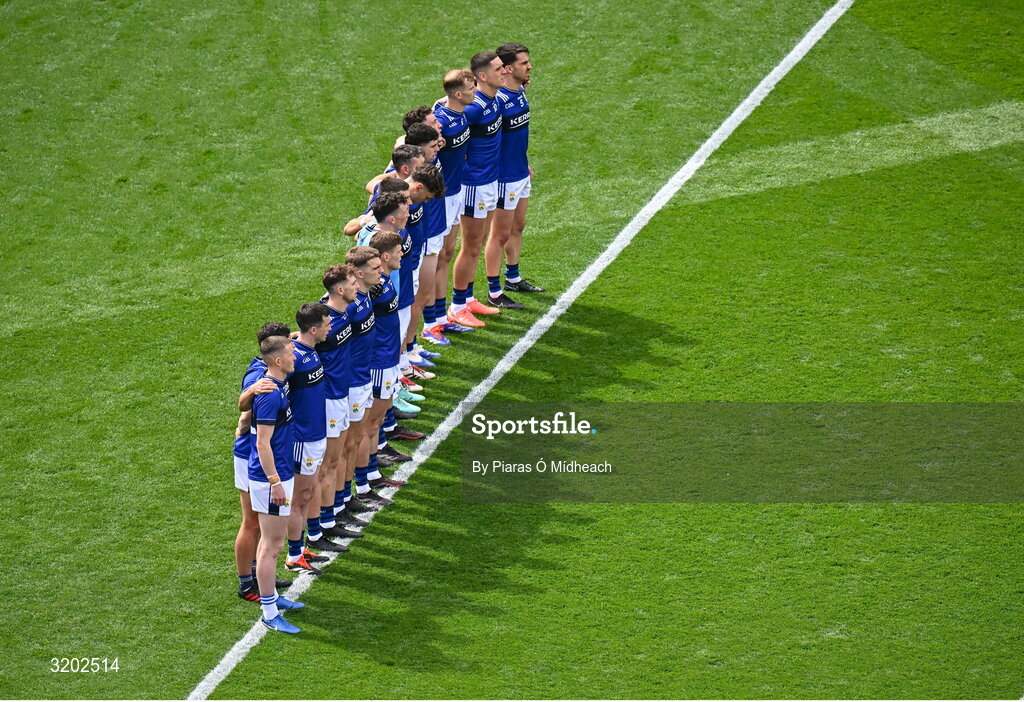 27 July 2025; Kerry players stand for Amhrán na bhFiann before the GAA Football All-Ireland Senior Championship final match between Kerry and Donegal at Croke Park in Dublin. Photo by Piaras Ó Mídheach/Sportsfile