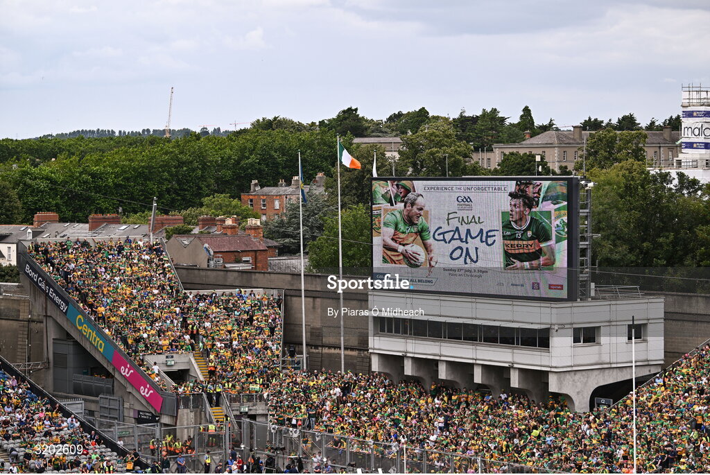 27 July 2025; The big screen at the Hill 16 end before the GAA Football All-Ireland Senior Championship final match between Kerry and Donegal at Croke Park in Dublin. Photo by Piaras Ó Mídheach/Sportsfile