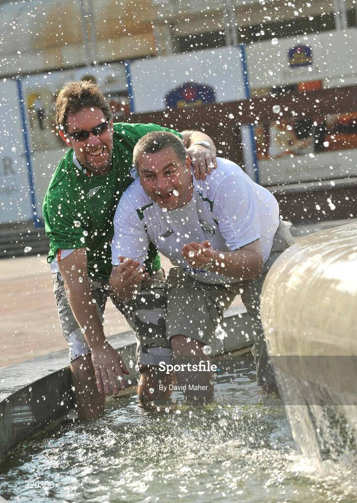 9 September 2008; Republic of Ireland fans Kieran Feighoney, left, and John Dowling, both from Dublin, cool down in the local fountain in Podgorica, Montenegro, ahead of the Republic of Ireland's 2010 World Cup Qualifier against Montenegro on Wednesday. Picture credit; David Maher / SPORTSFILE