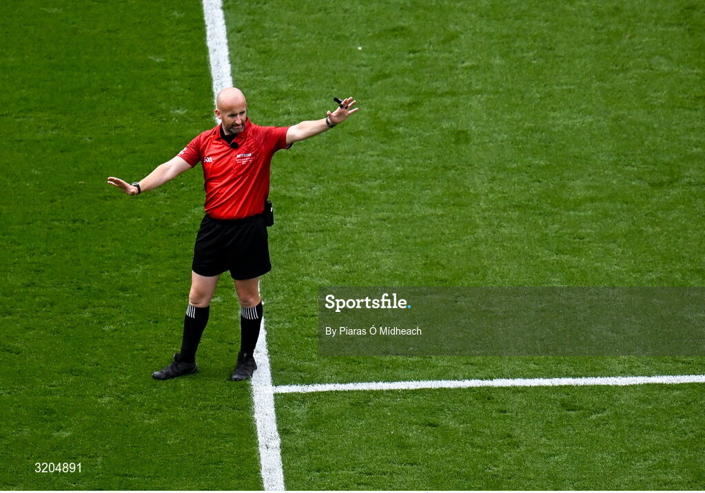 27 July 2025; Referee Brendan Cawley during the GAA Football All-Ireland Senior Championship final match between Kerry and Donegal at Croke Park in Dublin. Photo by Piaras Ó Mídheach/Sportsfile