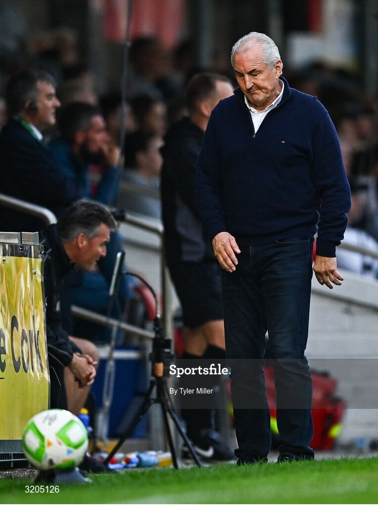 1 August 2025; Galway United manager John Caulfield reacts during the SSE Airtricity Men's Premier Division match between Cork City and Galway United at Turner's Cross in Cork. Photo by Tyler Miller/Sportsfile
