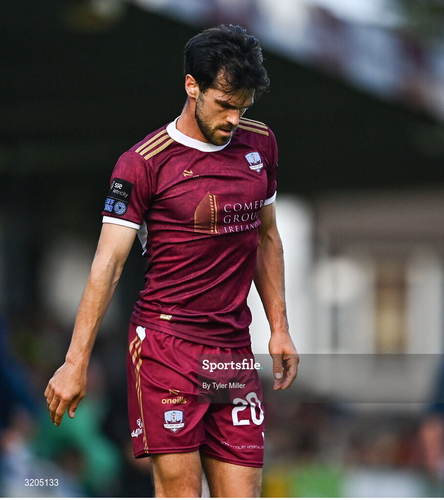 1 August 2025; Jimmy Keohane of Galway United reacts during the SSE Airtricity Men's Premier Division match between Cork City and Galway United at Turner's Cross in Cork. Photo by Tyler Miller/Sportsfile