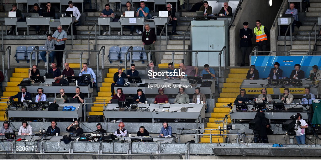 27 July 2025; A general view of the media tribune during the GAA Football All-Ireland Senior Championship final match between Kerry and Donegal at Croke Park in Dublin. Photo by Piaras Ó Mídheach/Sportsfile