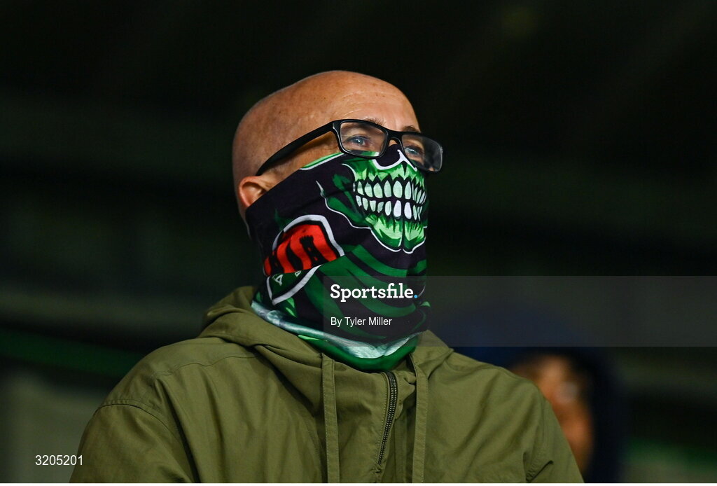 1 August 2025; A Cork City supporter during the SSE Airtricity Men's Premier Division match between Cork City and Galway United at Turner's Cross in Cork. Photo by Tyler Miller/Sportsfile