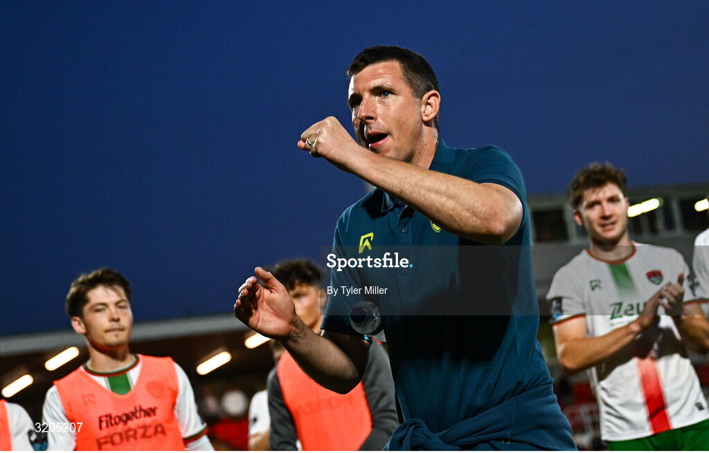 1 August 2025; Cork City manager Gerard Nashcelebrates after the SSE Airtricity Men's Premier Division match between Cork City and Galway United at Turner's Cross in Cork. Photo by Tyler Miller/Sportsfile