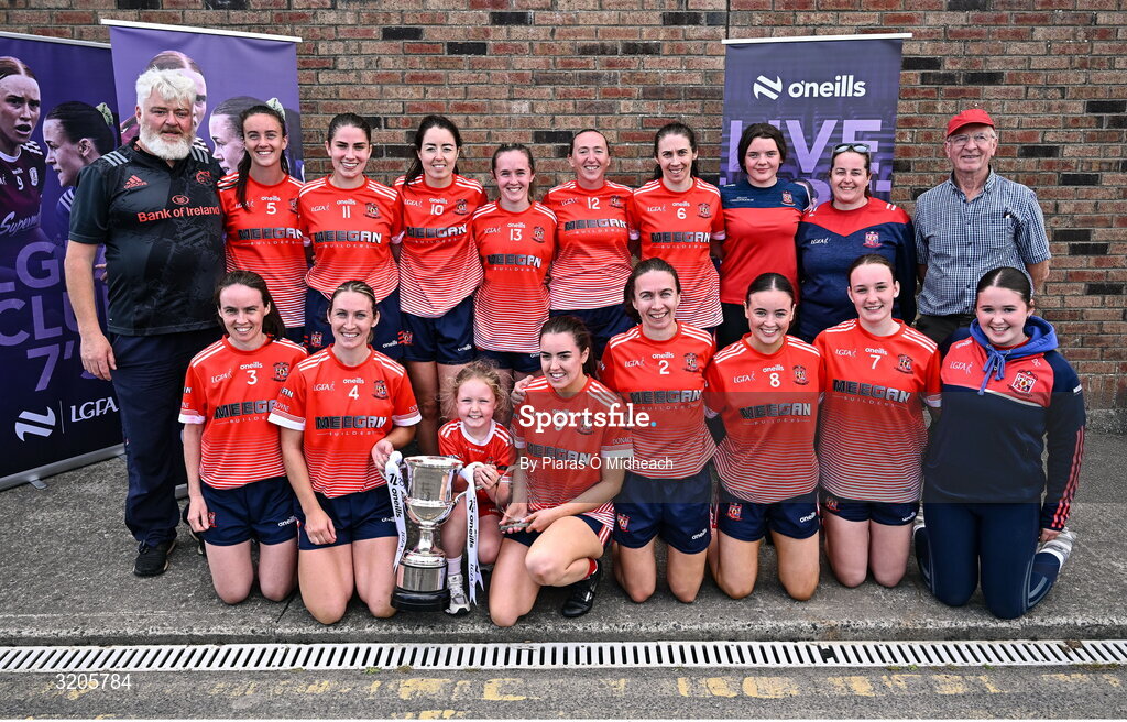 2 August 2025; Donaghmoyne, Monaghan, players celebrate after winning the Senior Championship Final at the O’Neills All-Ireland Club 7s competitions at Naomh Mearnóg GAA Club in Portmarnock, Dublin. Photo by Piaras Ó Mídheach/Sportsfile