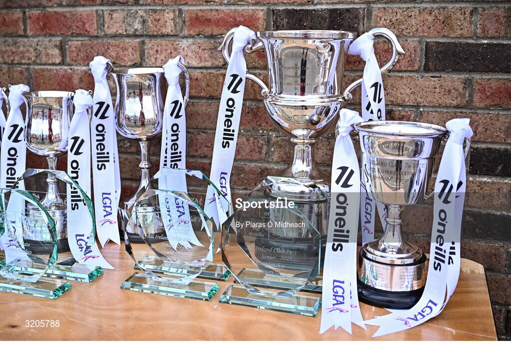 2 August 2025; Trophies and plaques at the O’Neills All-Ireland Club 7s competitions at Naomh Mearnóg GAA Club in Portmarnock, Dublin. Photo by Piaras Ó Mídheach/Sportsfile