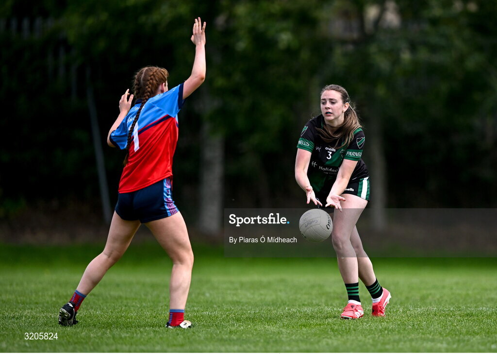 2 August 2025; Action from Tuam Cortoon, Galway and Pobal Parnell, Dublin, in the Intermediate competition at the O’Neills All-Ireland Club 7s competitions at Naomh Mearnóg GAA Club in Portmarnock, Dublin. Photo by Piaras Ó Mídheach/Sportsfile