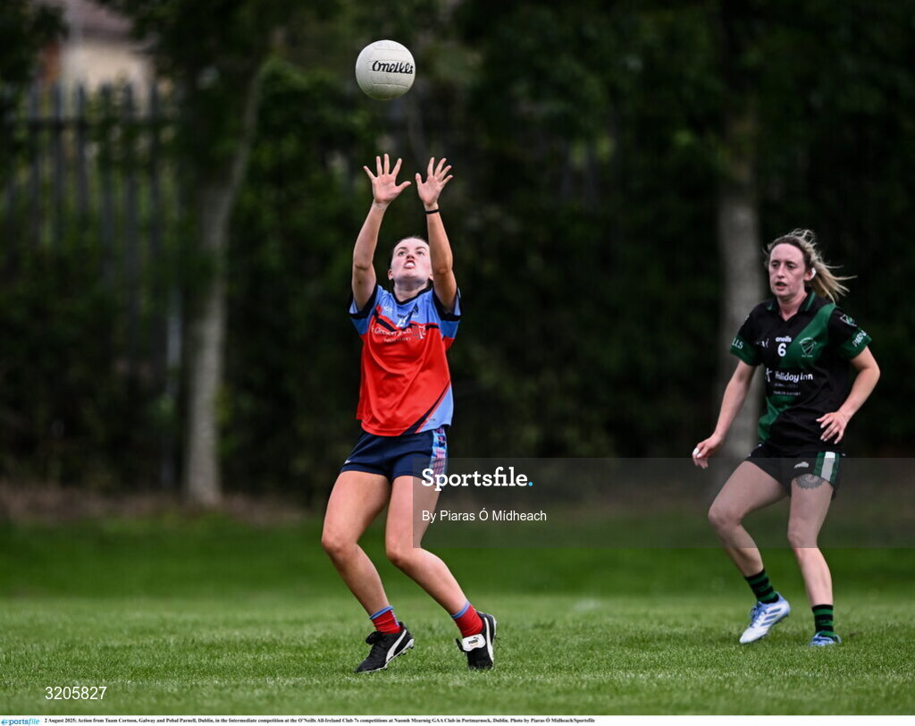 2 August 2025; Action from Tuam Cortoon, Galway and Pobal Parnell, Dublin, in the Intermediate competition at the O’Neills All-Ireland Club 7s competitions at Naomh Mearnóg GAA Club in Portmarnock, Dublin. Photo by Piaras Ó Mídheach/Sportsfile
